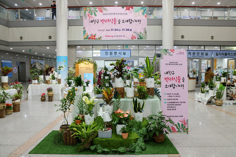 [도봉구 세계타임즈=이장성 기자] 서울 도봉구(구청장 오언석)가 11월 24일부터 26일까지 3일간 도봉구청 1층 로비에서 ‘반려식물 보급사업 전시회’를 개최했다.