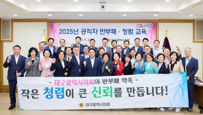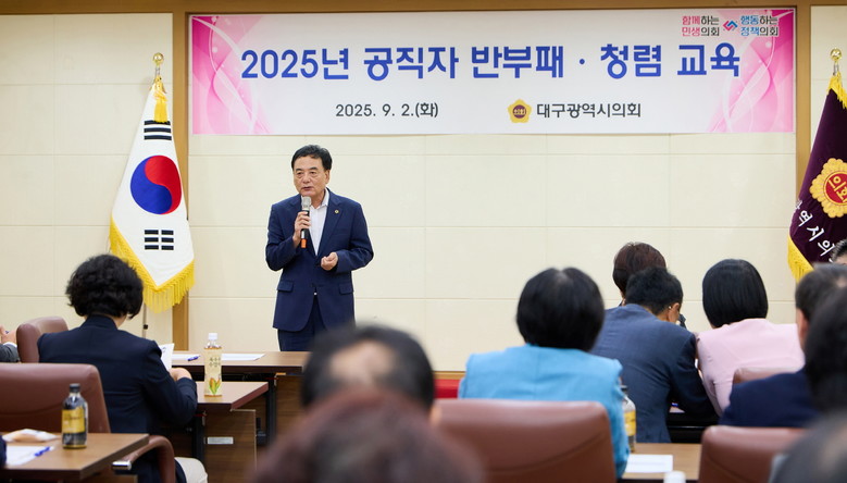 [대구 세계타임즈=한윤석 기자] 대구광역시의회(의장 이만규)는 9월 2일(화) 오후1시 30분, 시의회 3층 회의실에서 ‘2025년 반부패 청렴교육’을 실시했다.
