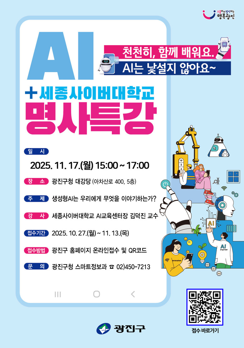 - 17일, 광진구청 대강당에서 생성형 인공지능 특강, 구민 400명 대상