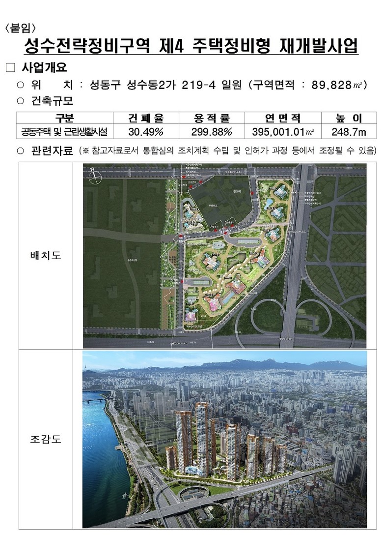 - 시 정비사업 통합심의, 성수전략정비구역 제4 주택재개발 정비사업 ‘조건부(보고) 의결’