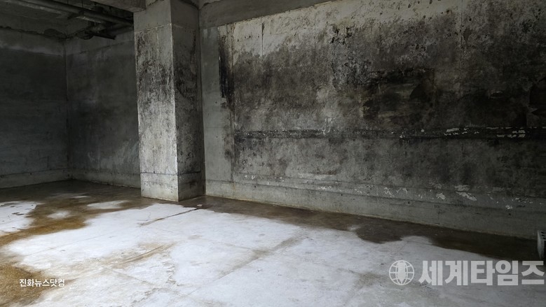[세계타임즈 = 이진화 기자] 부산광역시 서구 암남동 소재 월드오피스텔 지하실에 '심각한 누수와 곰팡이′의 발생 때문에 전문업체의 확인한 결과 뒤쪽 옆 건물 신축 공사현장 방향 옹벽크랙으로 누수가 진행되고 있는 것으로 알려져 지하실 입주민이 반발하고 나섰다.