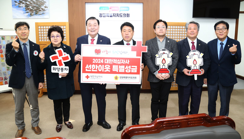“대한적십자사 강원특별자치도지사의 활동이 어려운 이웃들에게 큰 도움이 되고 있다.”면서 “특히, 올해 강원 지역에서 발생한 강릉산불, 태풍 ‘카눈’ 등 재난이 닥칠때마다 늘 발벗고 나서주셔서 감사드리며, 강원특별자치도의회도 여러분의 인도주의적 가치에 발맞춰 2024년도에도 도민 여러분들게 희망을 전달하는 의정활동을 펼쳐나가겠다.”고 말했다.