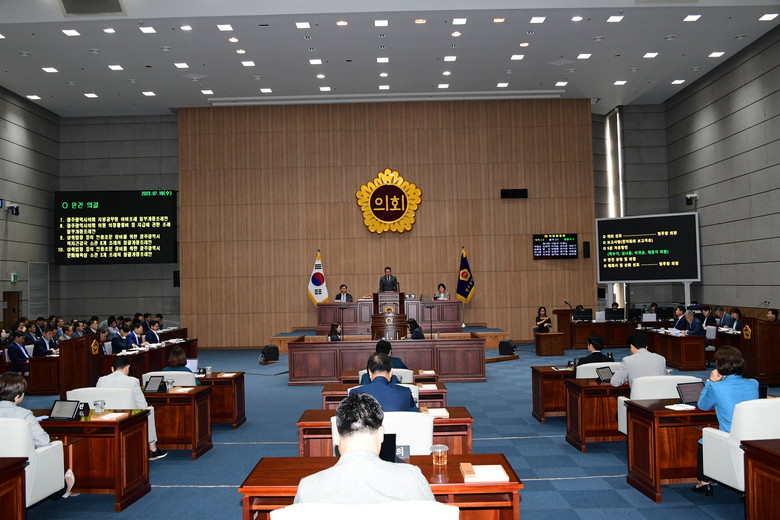 [광주 세계타임즈=손권일 기자] 광주광역시의회(의장 정무창)는 7월 19일 오전 10시, 시의회 본회의장에서 제318회 임시회 제2차 본회의를 개최하고 10일간의 회기를 마무리 지었다.