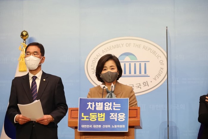 노동이사제와 공무원, 교원노조의 타임오프 관련 법안의 조속한 처리는 당연합니다. 뿐만 아니라, 노동법 밖의 노동자들을 위한 5인미만 사업장 근기법 적용법, 지금 이순간도 해고 칼날에 위협받고 있는 비정규직 노동자들을 위한 ‘사업이전시 고용승계법’, 그리고 노동자에게 스스로를 노동자라고 부를 수 있게 하는 ‘노동자의 날 법’ 등 핵심 노동법안 처리에 국민의힘은 협조해야 할 것입니다.
