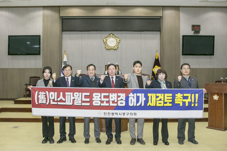 이에 중구의회는 이번 처분에 대해, ‘용도변경이 이루어진 후에 단속하여 문제를 방지하겠다는 것은 사후약방문식 행정이며 소극적이고 안일한 행정이 아닐수 없다’라고 강력하게 규탄하면서, ‘불안에 떠는 지역주민들의 우려를 해소하기 위해서라도 (구)인스파월드 용도변경 승인 건에 대해 재검토해 줄 것을 강력하게 촉구한다’는 성명서를 발표했다.