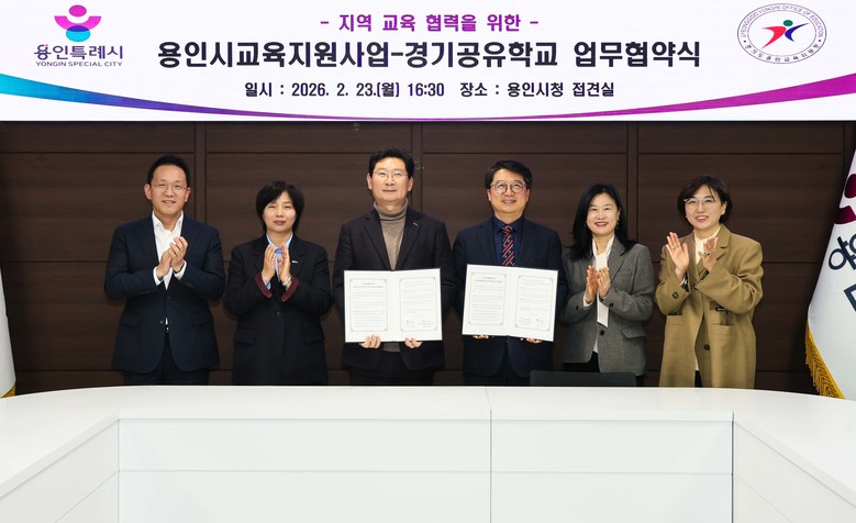 시는 23일 용인교육지원청과 ‘용인시교육지원사업-경기공유학교 업무협약’, ‘인플루엔자 지원사업’ 업무협약을 체결했다.
