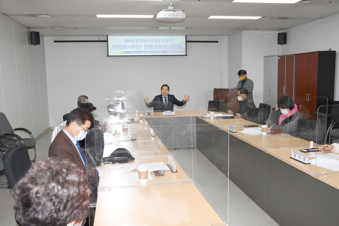 이날 간담회는 제8대 후반기 의정모니터단의 운영계획을 공유하고, 활성화 방안을 논의하기 위해 마련됐으며, 코로나19 위기상황을 감안하여 사회적 거리두기 방역수칙을 철저히 준수하며 진행됐다.