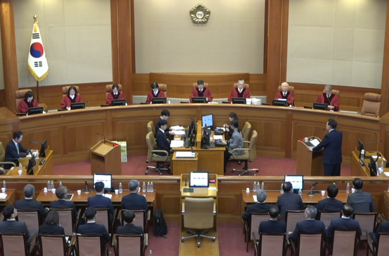 [세계타임즈 = 이장성 기자] 윤석열 대통령이 25일 서울 종로구 헌법재판소에서 열린 윤 대통령 탄핵심판 11차 변론에서 최종 의견 진술을 하고 있다. 2025.2.25 [헌법재판소 제공]