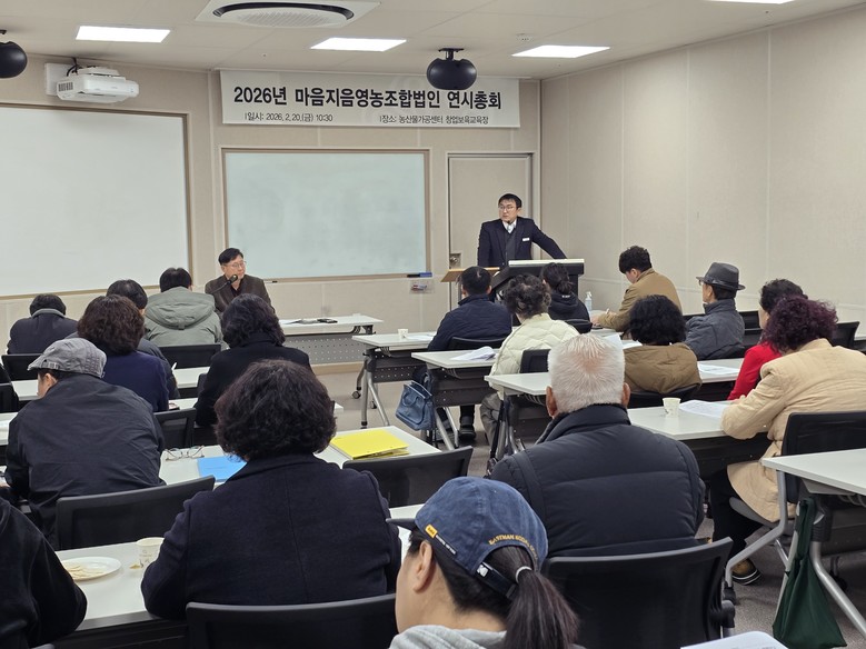 [이천시 세계타임즈=송민수 기자] 이천시 농산물종합가공센터 운영법인인 「마음지음영농조합법인(대표이사 이정규)」은 지난 20일 이천시 농산물종합가공센터 창업보육교육장에서 ‘2026년 마음지음영농조합법인 연시총회’를 개최했다.