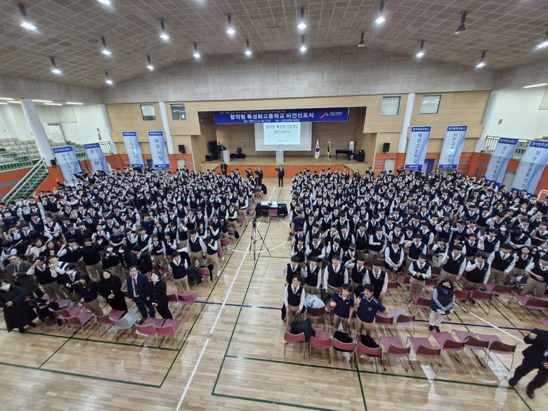 [파주시 세계타임즈=송민수 기자] 세경고등학교(교장 장계홍)는 전교생과 함께 협약형 특성화고 사업에 대한 설명 및 사업 비전 선포식을 21일 실시했다.