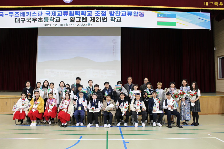 [대구 세계타임즈=한윤석 기자] 대구국우초등학교(교장 이교화)는 2023년 12월 17일(일) ~ 12월 22일(금)까지 자매학교인 우즈베키스탄 타슈켄트 앙그렌21번학교(교장 이스텔라) 학생들의 한국 방문을 맞아 다양한 국제교류 행사를 운영했다고 밝혔다.