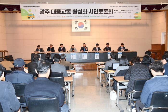 [광주=세계타임즈 손권일 기자] 광주광역시의회(의장 김동찬)는 11월26일 오후 광주도시철도공사 5층 대강당에서 황현택 산업건설위원장을 좌장으로 대중교통활성화 대토론회를 가졌다.