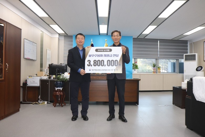 [세계타임즈]최성룡기자 = 대구지방교정청 교정연합회(회장 신정기)는 김종식 사무총장, 박종민 사무차장과 함께 을사년 설 명절을 맞이하여 25. 1. 21.(화) 11:00 법무부 대구지방교정청을 방문하여 김동현 대구지방교정청장에게대구지방교정청 소속 19개 교정시설의 불우수용자에게 지원할 지원금을 전달하였다.