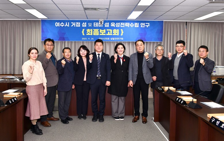 여수시의회(의장 김영규)는 365 섬 발전 정책연구회(대표의원 고용진)가 ‘여수시 거점 섬 및 테마 섬 특화 전략수립 연구’ 용역 최종보고회를 24일 의회 2층 회의실에서 열었다고 밝혔다.