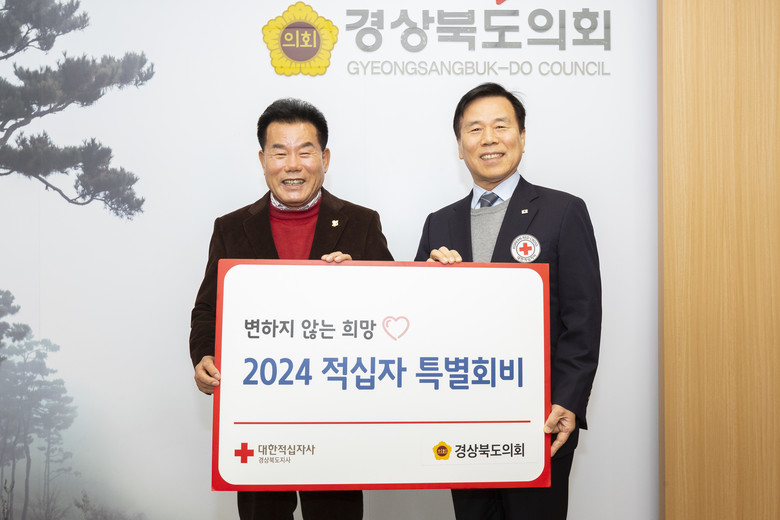 [경북 세계타임즈=한윤석 기자] 경상북도의회(의장 배한철)는 12월 18일 2024년도 적십자 특별회비를 대한적십자사 경북지사에 전달하며 연말 나눔문화 실천에 앞장섰다.