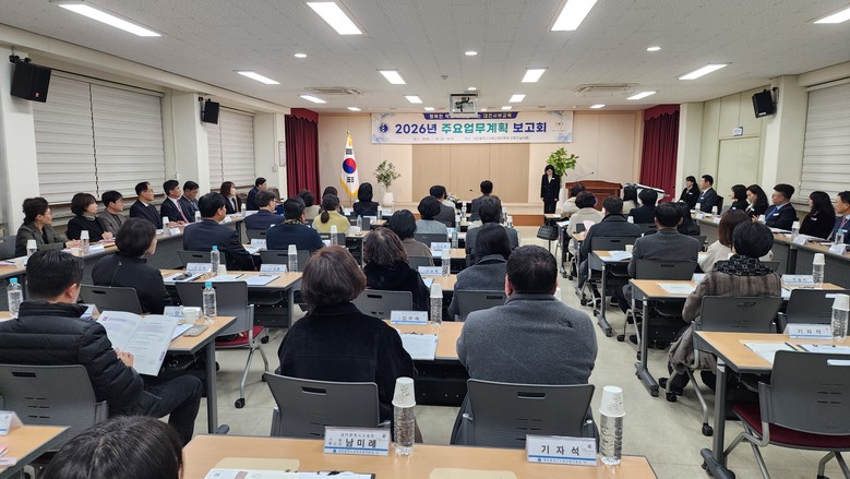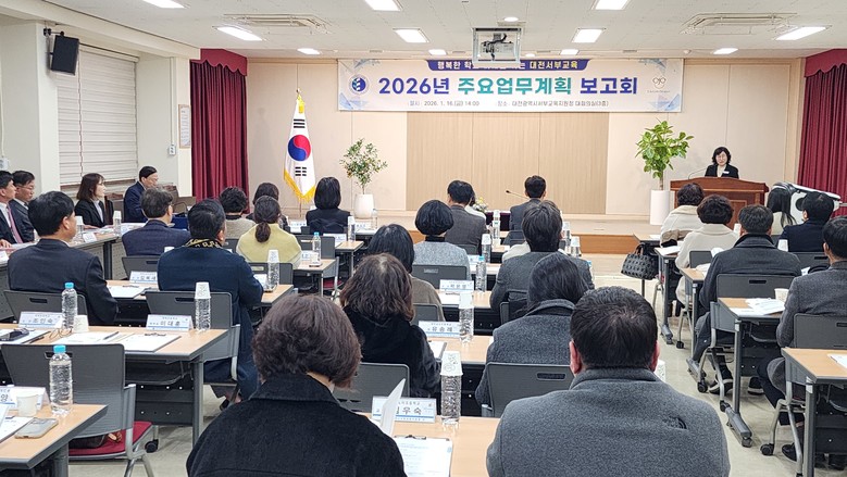 [대전 세계타임즈=이채봉 기자] 대전서부교육지원청은 1월 16일 대회의실에서 유치원장, 초·중학교 교장, 학교운영위원장 등 교육 관계자 80여 명이 참석한 가운데 ‘2026년 주요 업무 계획 보고회’를 개최했다고 밝혔다. 이번 보고회는 대전 서부 교육의 비전을 공유하고 교육 정책 전반에 대해 소통하기 위해 마련되었다.