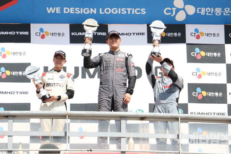 [금호 GT1 클래스 시상식에서 첫 우승의 기쁨을 만끽하고 있다. 세계타임즈=방춘제]