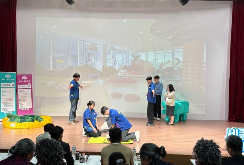 이들은 연극 형태로 심정지 상황 재연, 119신고 요청, 심폐소생술, 제세동기 사용 등을 제한 시간 8분 이내에 수행했다.