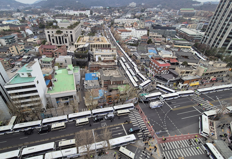 [세계타임즈 = 이장성 기자] 경찰이 윤석열 대통령 탄핵심판 선고를 이틀 앞둔 2일 헌법재판소 주변을 차벽으로 둘러싸는 '진공상태화'를 완료했다.서울경찰청 관계자는 브리핑에서 이날 오후 2시부로 진공상태 구역을 기존 100m에서 150m로 확장해 최종 설치를 완료했다고 밝혔다.