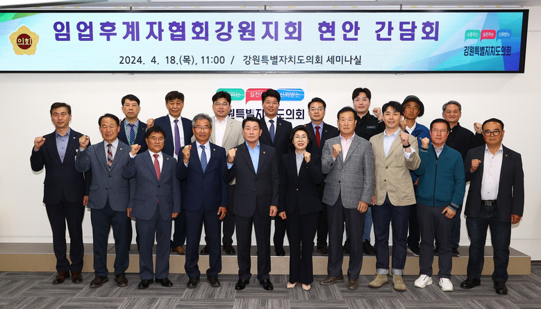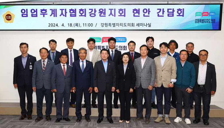 [강원도 세계타임즈=김민석 기자] 강원특별자치도의회 농림수산위원회(위원장 김용복) 위원들은 4월 18일(목) 제327회 임시회 회기 중 한국임업후계자협회강원지회와의 간담회를 도의회에서 개최, “임업분야 지원확대 및 각종 규제사항에 대한 개선건의”을 청취했다.