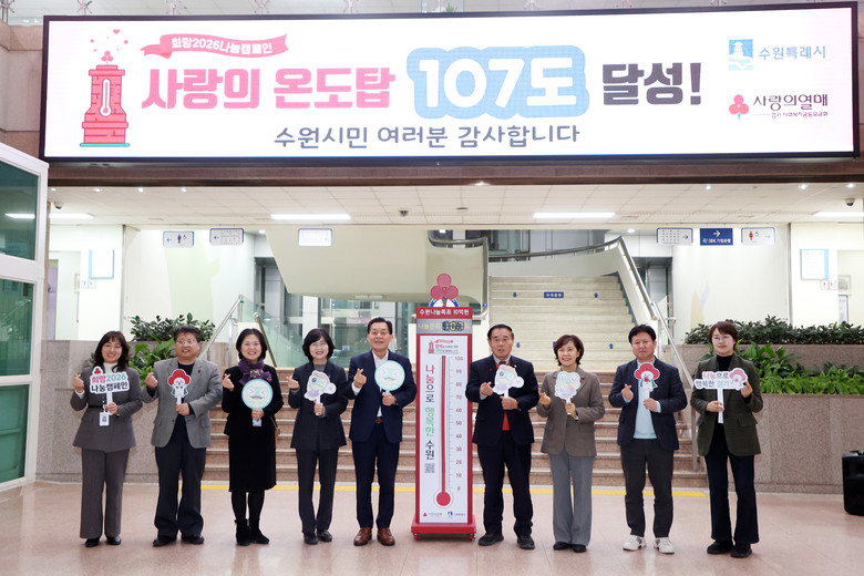 [수원시 세계타임즈=송민수 기자] 수원특례시의회(의장 이재식)는 2월 5일, 시청 본관 1층 로비에서 열린 ‘사랑의 온도탑’ 폐막식에 참석해 시민과 함께한 나눔의 의미를 되새겼다.