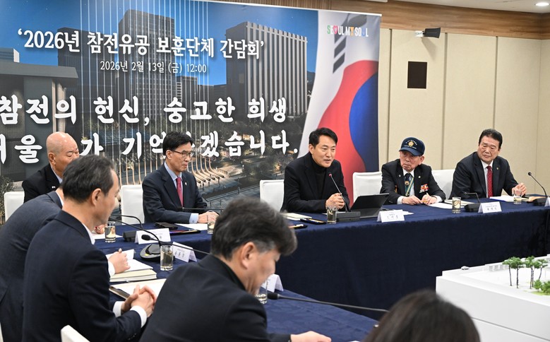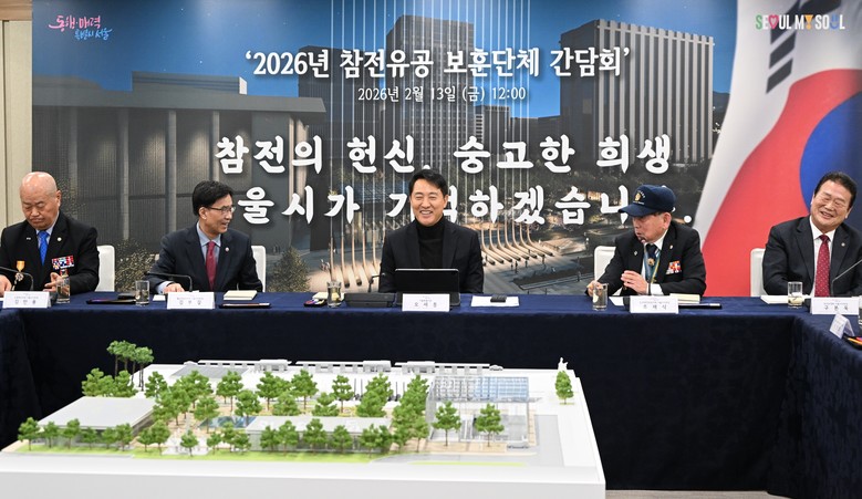 [서울 세계타임즈=이장성 기자] 오세훈 서울시장은 설 연휴를 앞둔 13일(금) 오후 12시, 서울시청 간담회장에서 열린 ‘참전유공 보훈단체 관계자 간담회’에서 새해 인사를 전하고 오는 4월 광화문광장에 조성될 ‘감사의정원’ 추진 상황을 공유했다.