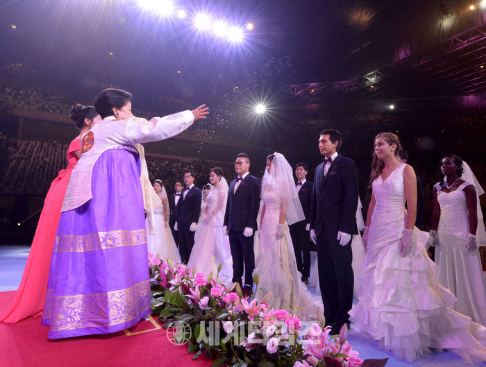 [세계타임즈 이채봉 기자]한국은 물론 미국, 영국, 독일, 이탈리아, 일본, 호주, 싱가포르, 필리핀, 네팔, 러시아, 아르헨티나, 콜롬비아, 요르단, 수단, 남아프리카공화국 등 64개국에서 직접 참석한 신랑·신부 4000여 쌍, 인터넷 생중계를 통해 동참한 194개국 2만여 쌍 등 총 2만4000여 쌍이 '부부'가 되는 순간이었다.