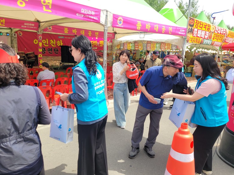 이날 홍보활동을 위해 홍보물품(리플렛, 시장바구니, 볼펜, 포스트잇)을 배포하며 범죄피해자 보호·지원제도에 대한 호보를 하였으며, 차재국 홍보위원장은 범피위원 활동과 인터뷰를 통해 범피센터의 역할과 지원내용을 지역민에게 알렸다.