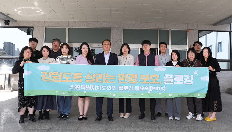 [강원도 세계타임즈=김민석 기자] 강원특별자치도의회 플로깅 동호회 ‘PIGS’의 발대식이 2024년 4월 18일 목요일 개최되었다. 플로깅(plogging)이란 ‘줍다’의 의미인 스웨덴어 ‘plocka upp’과 영어 ‘jogging’의 합성어로, 조깅을 하면서 주변의 쓰레기를 줍는 환경 정화 활동을 말한다. 플로깅을 통해 강원특별자치도에서 적극적으로 봉사활동을 펼치자는 의미를 담아 ‘Plogging in Gangwon State’의 약자인 ‘PIGS’가 동호회의 이름으로 탄생하였다.