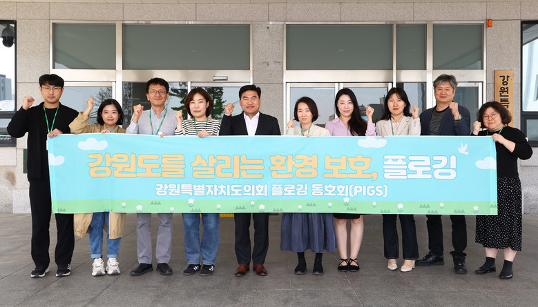 강원특별자치도의회 김정수 의원(철원), 문관현 의원(태백), 박관희 의원(춘천)을 포함한 총 19명의 회원으로 출발하는 PIGS는 이날 발대식을 열고, 모임 안내와 회원 소개, 향후 계획 등을 공유했다. 공지천과 봉의산 등 도의회 인근 주요 명소부터 시작해 다양한 도내 플로깅 코스를 찾아다니는 월 2회의 정기 모임은 물론 별도의 상시 모임, 회원 교류회 등도 예고되었다.
