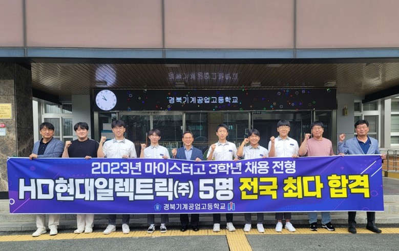 경북기계공고는 전국에서 19명을 선발하는 HD현대일렉트릭㈜ 채용 전형에서 전국 최다 합격인 5명의 합격생을 동시에 배출하는 쾌거를 거두었고, 합격한 학생들은 졸업 및 군복무 후 2026년 상반기 중 근무를 시작할 예정이다.