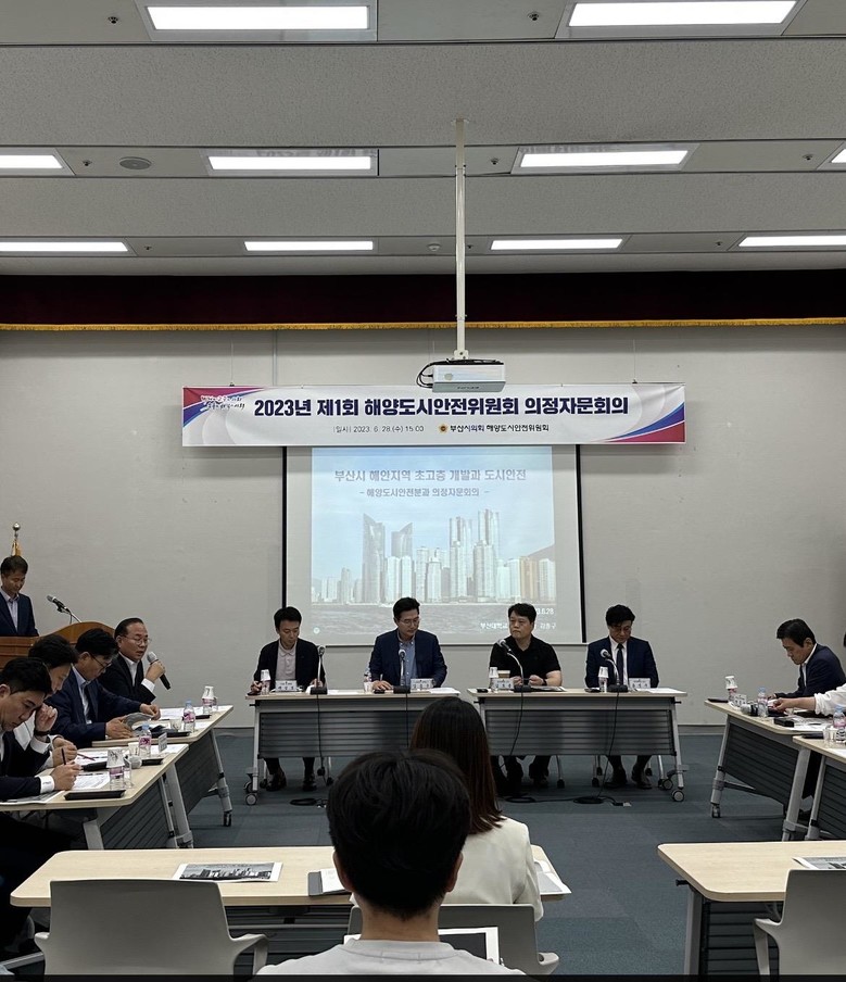이번 의정자문회의에서는 기후변화에 따른 해수면 상승 등 자연재해로 인한 해안가 침수 피해가 막대한 시점에서 해안지역에 난립되는 초고층건축물로 인한 해안 경관 훼손, 도시경쟁력 저하 및 도시 안전의 문제를 주제로 부산의 해안(연안) 인근지역에 대한 방재 대책과 부산형 도시개발을 논의하는 자리를 가졌다.