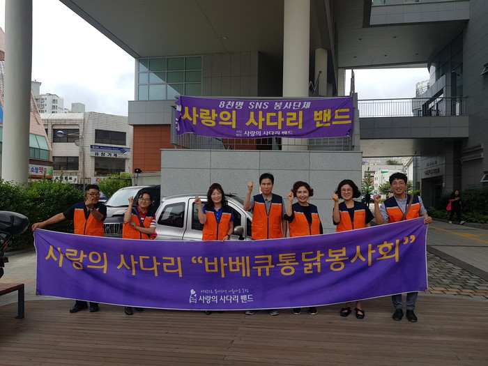 손소리복지관 유형걸 관장은 “오늘 사랑의 사다리 밴드 봉사단체에서 바비큐통닭을 지원해주셔서 큰 힘과 위안이 된다.”면서 감사함을 전했다.