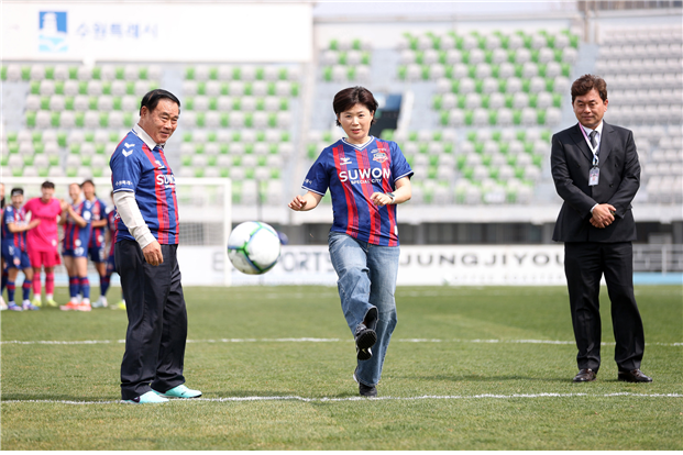 이번 경기는 수원FC위민과 서울시청의 맞대결로, 장미영 위원장은 시축 후 팬들과 함께 경기를 관람했다.