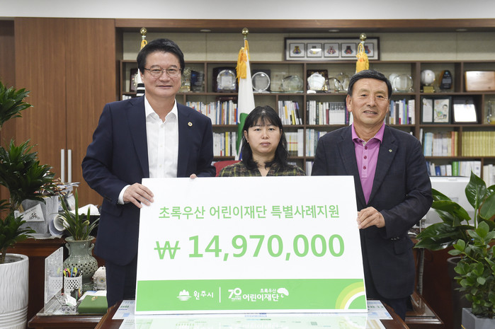[원주시=세계타임즈 김민석 기자] 초록우산 어린이재단 강원지역본부(후원회장 황인구)는 21일 원주시청에서 관내 저소득층 아동 지원을 위한 후원금 1,500여만 원을 전달했다.