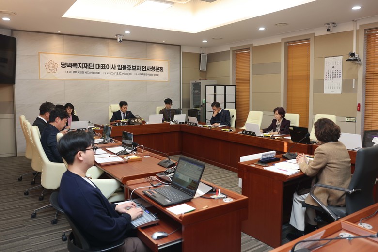[평택시 세계타임즈=송민수 기자] 평택시의회는 12월 17일, 복지환경위원회 회의실에서 평택시복지재단 대표이사 임용후보자에 대한 인사청문회를 실시했다.