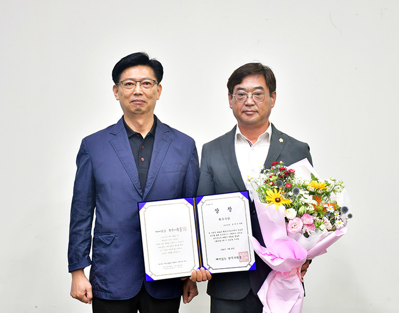 이번 평가에 참여한 주민들은 완주군의회에서 최우수 의원과 피감부서로 선정된 심부건 의원과 강신영 산림녹지과장에게 상장과 꽃다발을 전달했다.