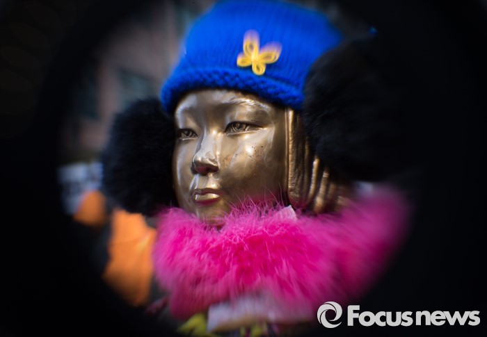 | △ 털모자와 귀마개 한 소녀상 |