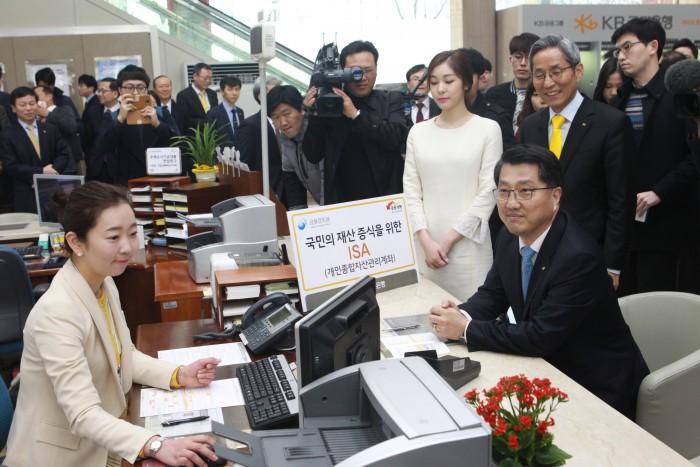 15일 금융감독원과 국민은행에 따르면 진웅섭 금감원장은 서울 여의도 국민은행 여의도영업지점을 방문해 ISA에 가입했다.