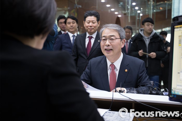 (서울=포커스뉴스) 15일 오후 서울 여의도 신한금융투자 본사 영업점에서 임종룡 금융위원장이 개인종합자산관리계좌(ISA)를 가입하고 있다.