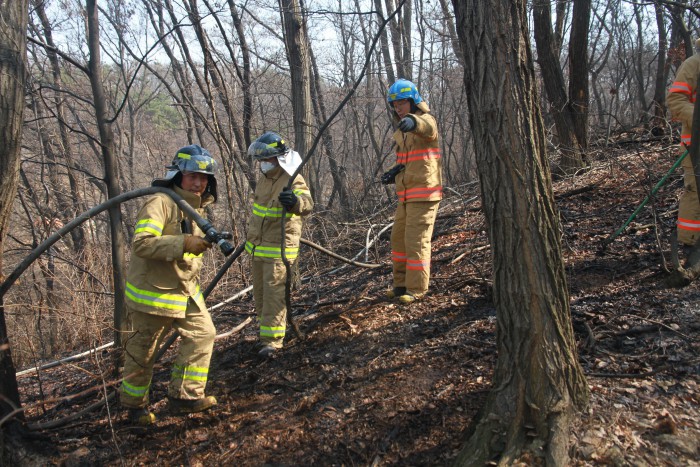 이번 불로 인근 산소 잔디 109㎡와 낙엽, 잡목 3164㎡가 탔으며, 경찰과 소방당국은 정확한 피해 규모를 조사 중이다.서울 서초구 내곡동 '홍씨마을' 야산에서 산불이 발생해 잔디 및 잡목 3,200여㎡가 탔다. <사진제공=서초소방서>