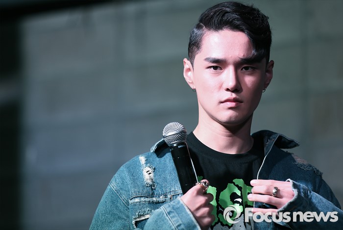 (서울=포커스뉴스) 23일 오후 서울 강남구 JBK 컨벤션홀에서 가수 딘이 첫번째 정규앨범 [130 mood : TRBL] 발표 기자간담회에 참석하고 있다.
