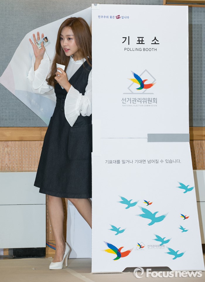 (서울=포커스뉴스) 20대 총선을 닷새 앞두고 사전투표가 이틀동안 실시되는 8일 오후 서울 강남구 청담동주민센터에 마련된 사전투표소에서 배우 조보아가 투표를 하고 있다.
