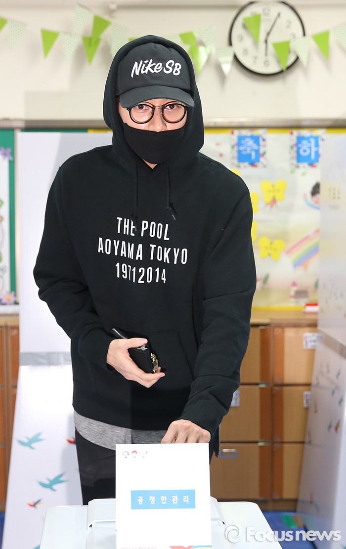 (서울=포커스뉴스) 20대 국회의원 선거일인 13일 오전 서울 용산구 한남초등학교에 마련된 투표소에서 배우 박해진이 투표를 하고 있다.