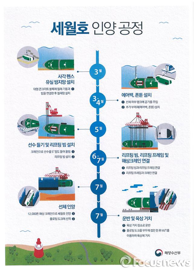 (서울=포커스뉴스) 해양수산부(해수부)는 지난 14일 브리핑을 통해 올해 7월 인양을 목표로 인양작업이 이뤄지고 있다고 밝혔다.