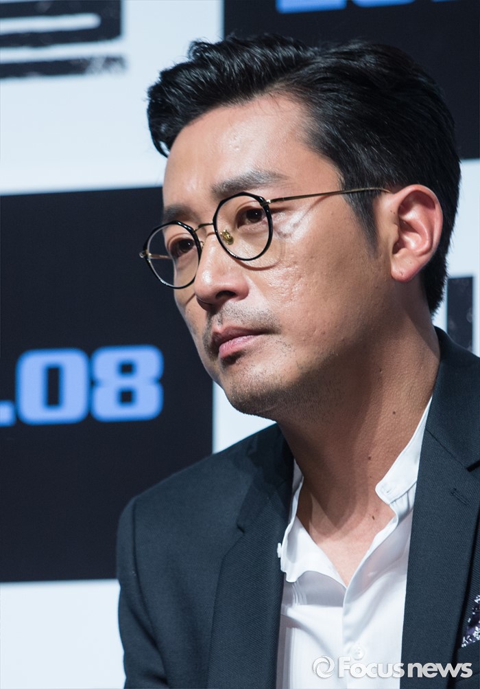 (서울=포커스뉴스) 7일 오전 서울 강남구 압구정 CGV에서 열린 영화 '터널' 제작보고회에 참석한 배우 하정우가 취재진에게 질문을 받고 있다.