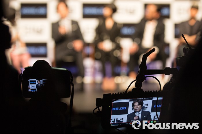(서울=포커스뉴스) 7일 오전 서울 강남구 압구정 CGV에서 열린 영화 '터널' 제작보고회에 참석한 배우 오달수가 취재진의 질문에 답하고 있다.