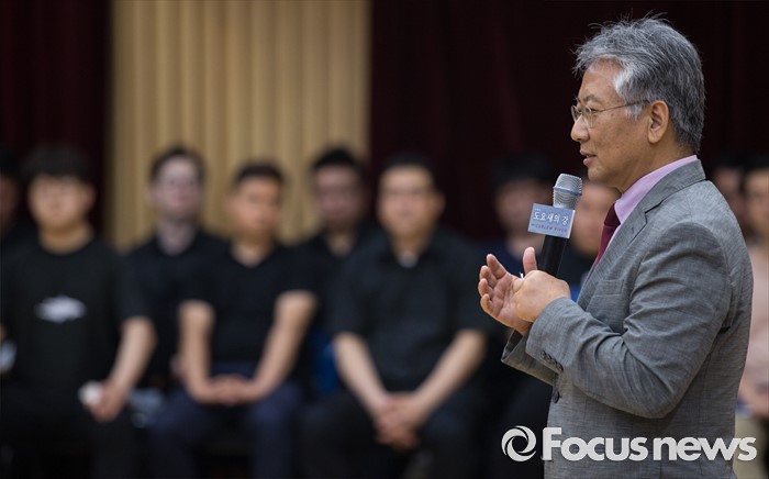 (서울=포커스뉴스) 7일 오후 서울 종로구 세종문화회관에서 열린 오페라 '도요새의 강' 제작발표회에 참석한 이건용 서울시오페라단장이 인사말을 하고 있다.