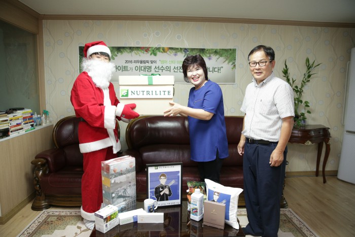 이들에게 뉴트리라이트는 선수들의 체계적 영양 관리를 위한 맞춤형 건강기능식품 '뉴트리라이트 커스터마이즈드 팩'과 더불어 선수들의 얼굴을 그린 팝아트 제품을 증정했다. 한국암웨이의 다양한 제품 또한 함께 전해졌다.
