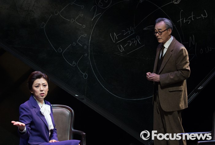 (서울=포커스뉴스) 14일 오후 서울 종로구 동숭아트센터 소극장에서 열린 연극 '코펜하겐' 프레스콜에 참여한 배우 이영숙(왼쪽)과 남명렬이 주요장면을 시연하고 있다.
